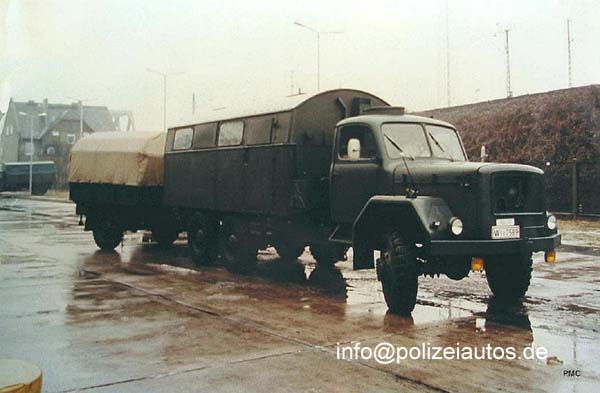 Befehlskraftwagen der hess. Bereitschaftspolizei mit Anhänger.