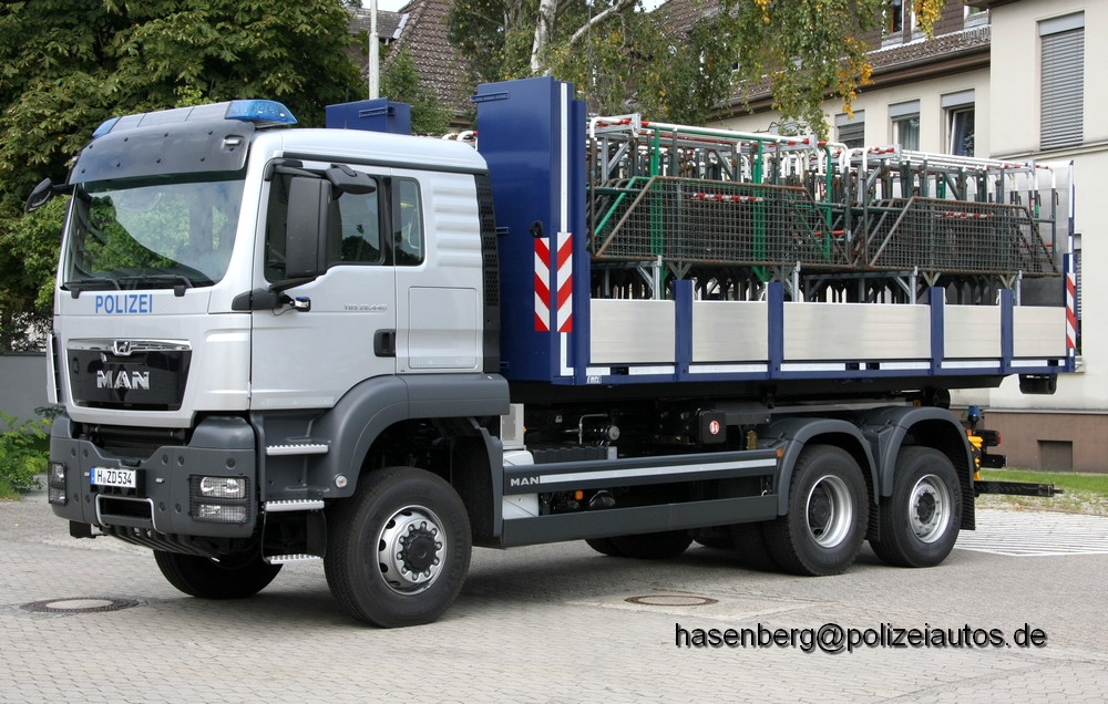 | Beschreibung: | Wechselladerfahrzeug der Polizei Niedersachsen.