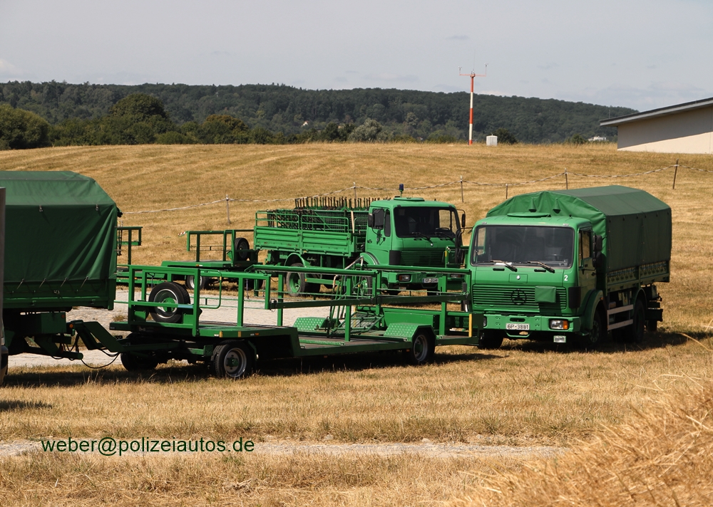 Lkw der Bereitschaftspolizei Baden-Württemberg zum Transport von sog. "Hamburger Gittern" mit entsprechendem Anhänger der Fa. EMPL.